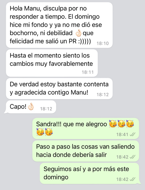 Todas las semanas, me pondré en contacto contigo para que rellenes un rápido formulario en el que me contaras te has sentido esa semana y como te has encontrado en tus entrenamientos, algo clave para monitorizar tu progreso con el plan.